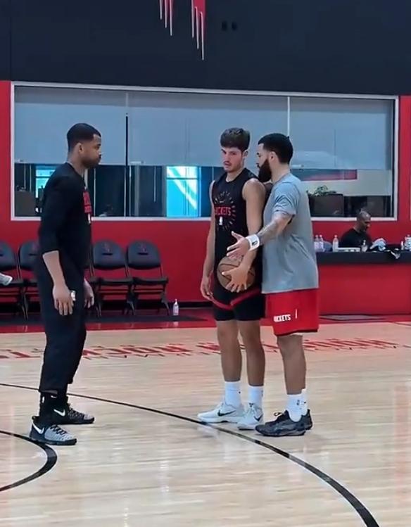火箭中锋阿尔佩伦·申京正在代表国家队参加欧锦赛的赛事,目前并没有来到休斯敦。不过火箭队的两位控球后卫——老将范弗里特和21岁的新人谢泼德,倒是同时出现在了球队的训练馆当中。我们在报道中已经好久没见到过2人了。