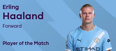 本场比赛,哈兰德在第34分钟打入一球,帮助曼城取得领先,但随后布莱顿将比分逆转,赛后,哈兰德以53%的得票率当选英超官方本场比赛球迷票选全场最佳球员。