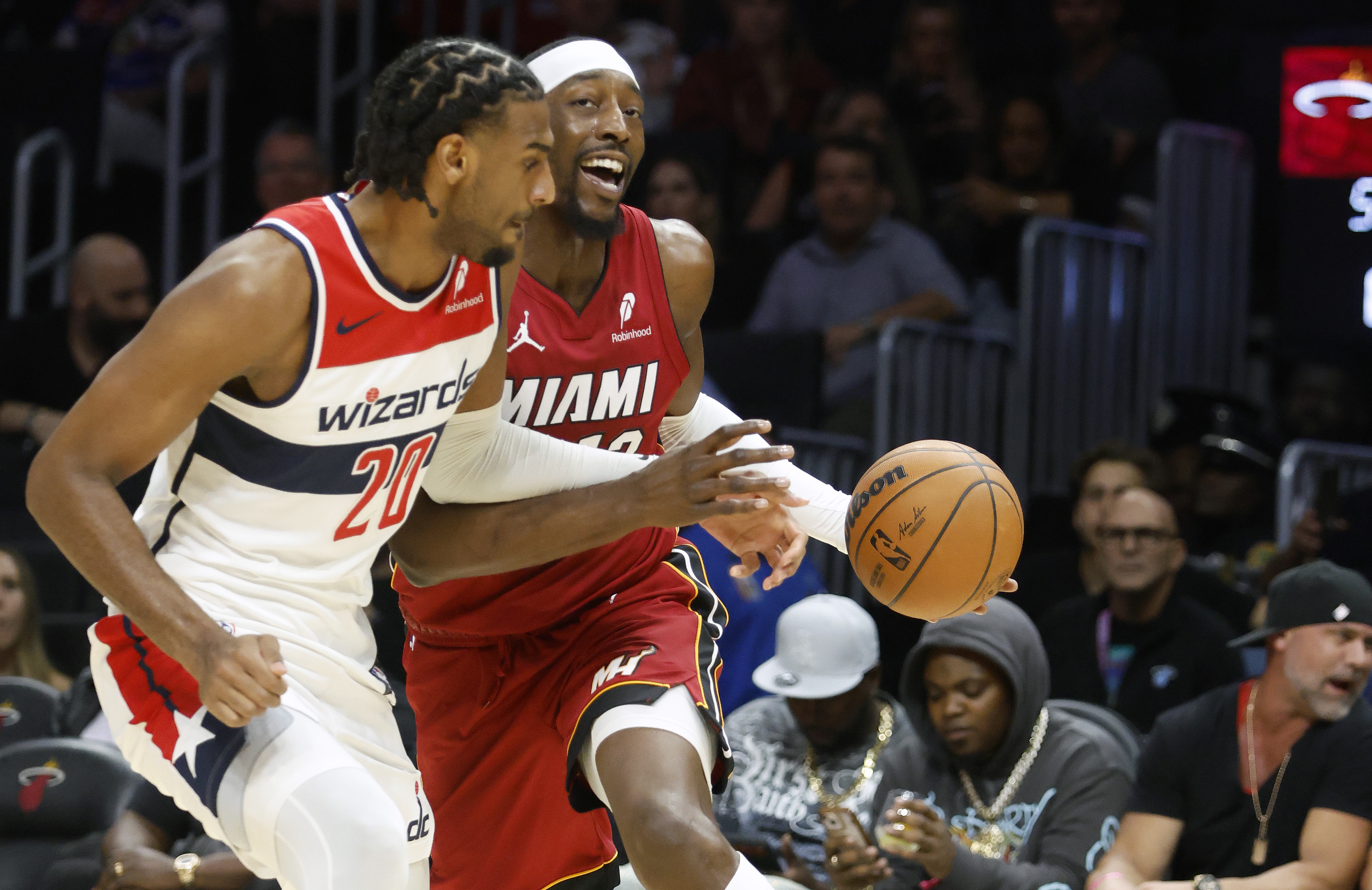 我承认看着科比的粉丝开始纠结于效率有点好笑,毕竟,你知道的,他可是曾经在一场比赛里出手过60次的人。我只想问问,热火还有谁该去投篮呢?泰勒·希罗、安德鲁·维金斯、诺曼·鲍威尔、克雷尔·韦尔和尼古拉·约维奇这场比赛都休战了,确实没有其他球员需要奇才重点盯防了。这注定会是一个高使用率但可能有些低效的夜晚。阿德巴约只是把出手量提升到了历史级别。热火在最后时刻是在强行喂球吗?是的。他们当然这么做了。他们有机会创造NBA历史,并且他们也确实这么做了。
