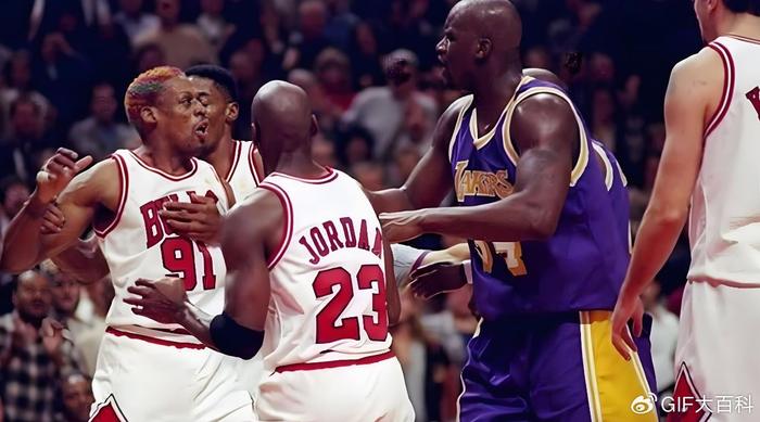 硬刚奥尼尔,辅佐篮球之神乔丹完成第二个三连冠,罗德曼的篮板王